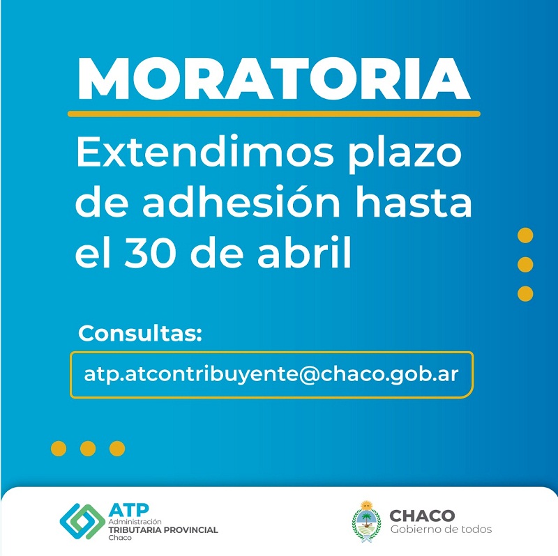 Hasta el 30 de abril de este año hay tiempo para adherirse al Régimen de Regularización Excepcional de Obligaciones Tributarias que prevé un financiamiento de hasta 48 cuotas. El trámite se realiza vía web a través de http://atp.chaco.gob.ar, con Cuit y clave fiscal del contribuyente.