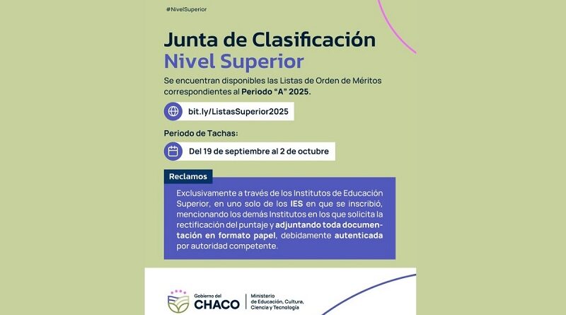 Leer másEl Ministerio de Educación, a través de la Junta de Clasificación de Nivel Inicial, comunica a los docentes que desde