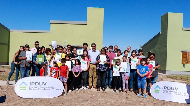 Arévalo explicó que para la reactivación de la construcción de las 25 viviendas el IPDUV realizó un proceso de reconversión y redirección de fondos. “Hoy 25 familias pudieron acceder, por sorteo público, a sus casas”, remarcó y señaló que así se va consolidando el barrio y la localidad donde ya se entregaron -desde 2019- 150 viviendas y otras 120 ya están licitadas.
