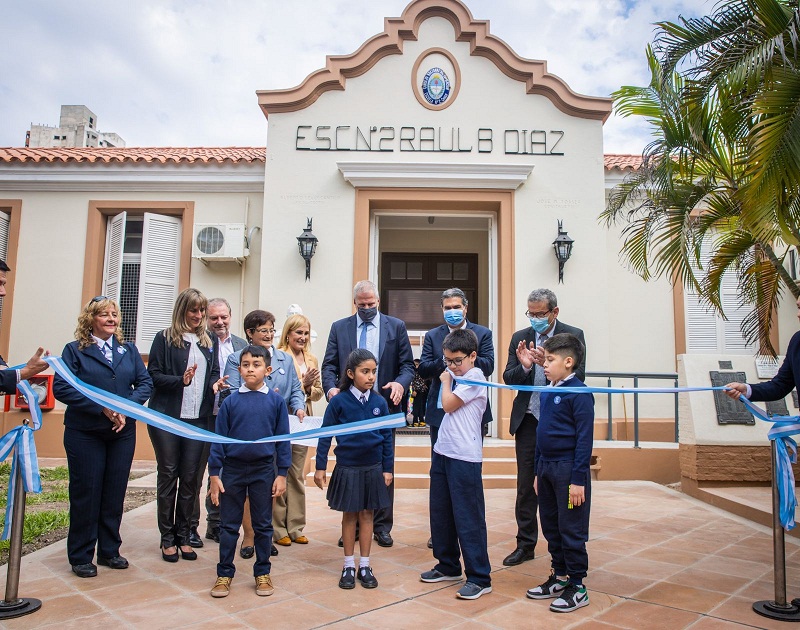 El gobernador Jorge Capitanich y el ministro de Educación de la Nación, Jaime Perczyk, inauguraron las obras de refacción integral de la emblemática Escuela de Educación Primaria N°2 “Raúl Basilio Díaz”, de Resistencia. El acto, se dio como parte del primer día de jornada extendida en las escuelas primarias que se implementa en varias provincias desde este lunes.