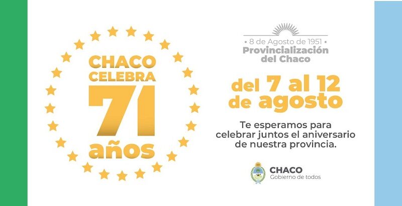 De esa forma, el Gobierno invita a las y los chaqueños a disfrutar de distintos números artísticos, talleres y actividades recreativas que integrarán la grilla de este nuevo aniversario de la provincialización, a 71 años de aquel 8 de agosto de 1951 en que se sancionó la Ley N°14037 que declaró como Provincia al Territorio Nacional del Chaco.