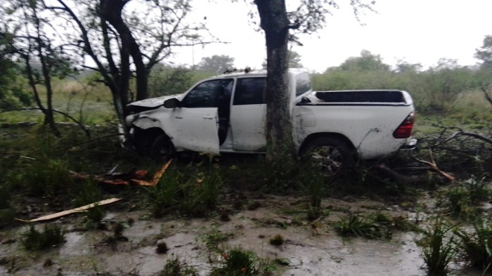 Entre Villa Berthet y Quitilipi: Una familia de San Bernardo viajaba en una Toyota Hilux cuando perdió el control, cortó el alambrado y terminaron en un campo.