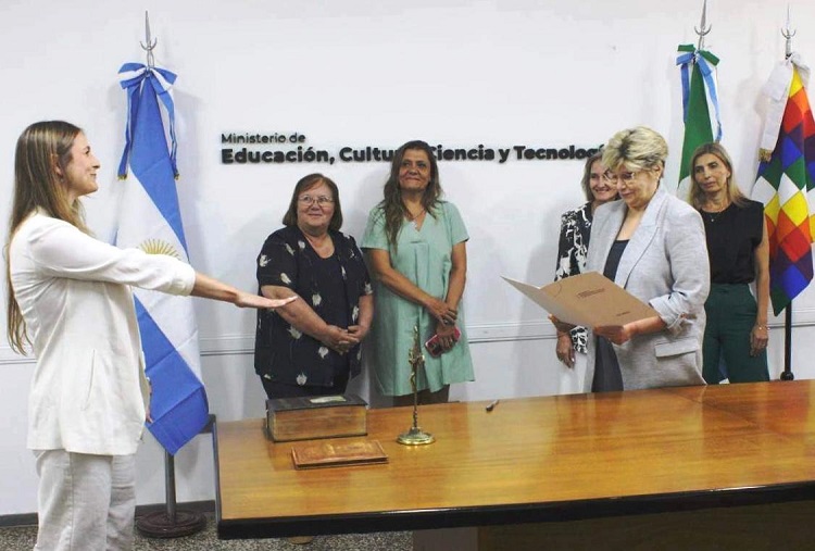 La ministra de Educación, Cultura, Ciencia y Tecnología de la Provincia, Sofía Naidenoff este martes después del mediodía, en el salón del ministerio, presidió el acto de juramento de la nueva subsecretaria de Coordinación Presupuestaria y Financiera de esta dependencia, Licenciada en Administración, Belén Peláez Alcalá. Este acto contó con la presencia de la escribana subrogante de la Gobernación de la Provincia del Chaco, María Belén Müller.