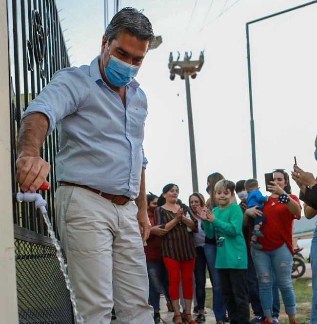 Acompañado la secretaria de Desarrollo Territorial y Ambiente, Marta Soneira; y el presidente de Sameep, Leonardo Aguzin, Capitanich comprobó el funcionamiento de las obras de agua potable correspondientes al sistema de redes de agua potable de la localidad. Lo hizo a través de una visita al domicilio de Nilda Giménez, vecina de la localidad.