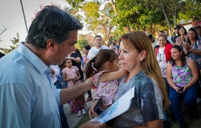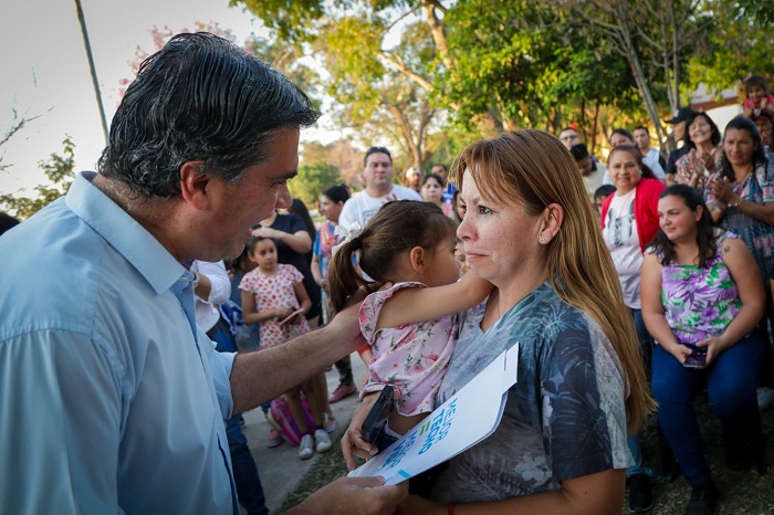 El gobernador Jorge Capitanich junto con la ministra de Desarrollo Social, María Pía Chiacchio Cavana, entregaron este miércoles 27 tarjetas Tuya Recargables en el marco del programa “Mejo Techo Mejor Vida” a vecinas y vecinos de Resistencia y Barranqueras, en el barrio Villa Río Negro.