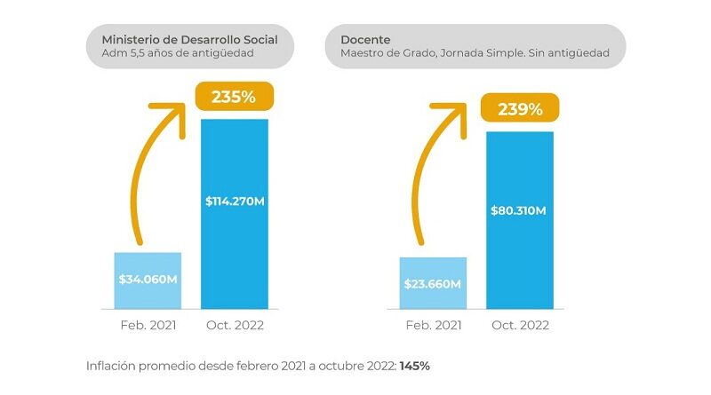 En definitiva, se logró que el salario público crezca por encima de la inflación tanto en 2021 como en 2022, aún a pesar de la fuerte aceleración de la inflación.