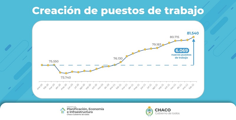 Asimismo, en términos absolutos, “Chaco fue la provincia de la región NEA que más puestos de trabajo formales creó en los últimos dos años”, manifestó Pérez Pons, es decir tomando desde febrero de 2020 a febrero de 2022.
