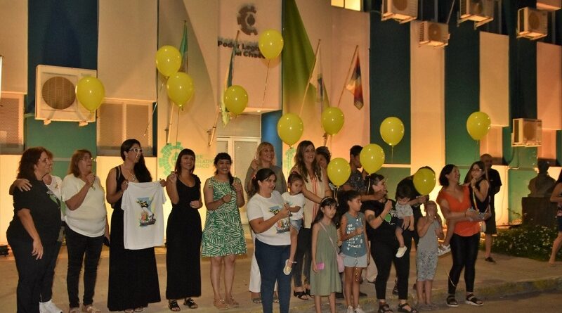 Las diputadas Jéssica Ayala, Andera Charole, Gricelda Ojeda y Mariela Quirós junto a la Fundación Un Globo para Patu y la concejala Soledad Villagra , participaron el miércoles por la noche de la iluminación del edificio de la Legislatura y la suelta de globos, como forma de crear conciencia y sensibilizar a la población sobre la importancia de la fecha, en el marco del Programa “Febrero se viste de Dorado”, en consonancia con lo dispuesto por la Ley 3486-G.