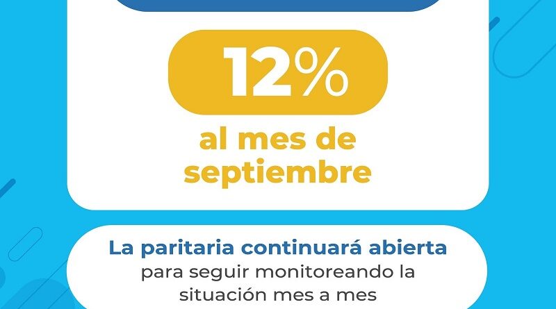 En el caso del sector docente, tendrán un adelantamiento de la cláusula gatillo del 12%. A eso se suman 200 puntos adicionales como recomposición que también cobrarán este mes. Este 12% y los 200 puntos serán pagados de manera adelantada esta semana.