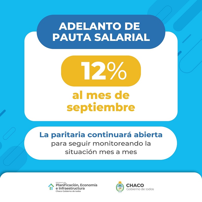 El Gobierno provincial abonará este viernes 15 el adelanto del incremento del 12% de la pauta salarial (prevista originalmente para octubre). La medida alcanza a las y los trabajadores activos y jubilados e incluye incrementos para las becas provinciales con contraprestación laboral (Más Inclusión, Instituto del Deporte, Conveniados del Instituto de Cultura y Servicio y Mantenimiento escolar).