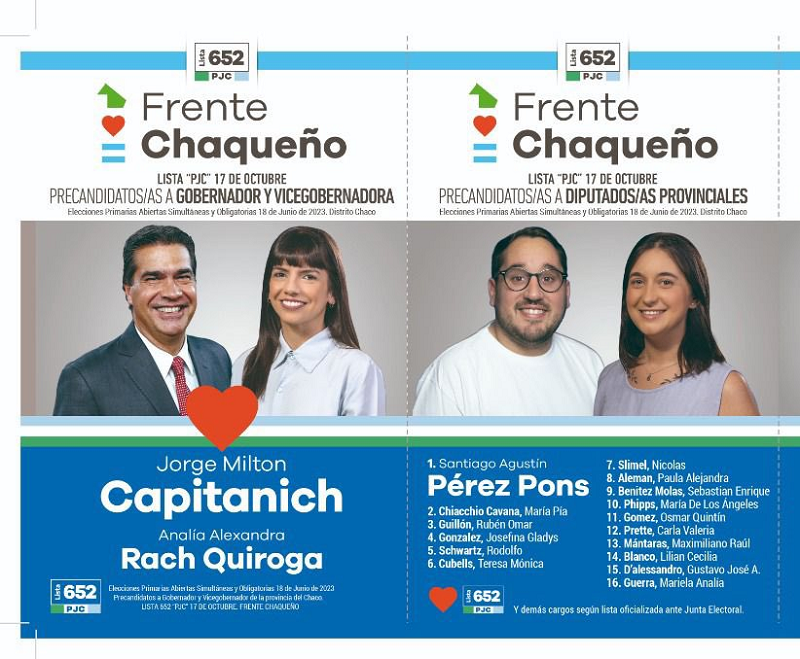 Lista provisoria de legisladores provinciales del Frente Chaqueño para el 17 de septiembre del 2023: