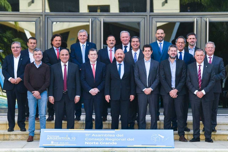 Gobernadores de las provincias que conforman el Consejo Regional del Norte Grande, que hoy se reunieron en Formosa una la 11° Asamblea del bloque en la cual participan el jefe de Gabinete de Ministros, Juan Manzur; junto a los titulares de Interior, Eduardo de Pedro; de Desarrollo Productivo, Daniel Scioli; de Turismo y Deportes, Matías Lammens; y de Desarrollo Social, Juan Zabaleta, manifestaron su apoyo a la nueva ministra de Economía, Silvina Batakis.