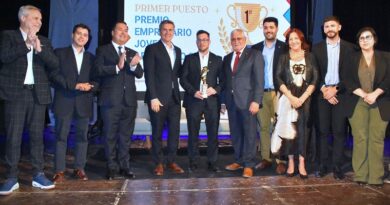 La subsecretaria de Economía para el Desarrollo, Martha Viviana García, junto al intendente de Cote Lai, Anselmo “Lely” Bordón, la encargada del taller textil y las alumnas participantes, realizaron la entrega, la semana pasada, en el salón de directores del Hospital Pediátrico.