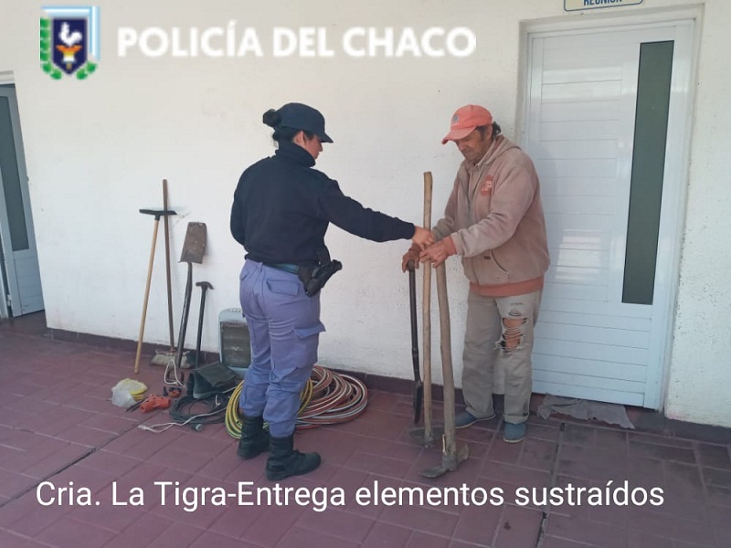 LA TIGRA- RECUPERAN ELEMENTOS SUSTRAÍDOS DE UN PREDIO MUNICIPAL, HAY UN DETENIDO