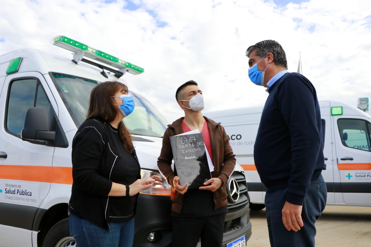 El gobernador Jorge Capitanich entregó, este domingo junto a la ministra de Salud Pública Carolina Centeno, 12 ambulancias de alta complejidad íntegramente equipada, a intendentes y directores de hospitales del interior provincial. Las unidades fortalecerán el servicio en Avia Terai, La Tigra, La Clotilde, Capitán Solari, Puerto Eva Perón, Napenay, Colonias Unidas, Villa Río Bermejito, Colonia Elisa, Las Garcitas, Pampa del Infierno y General Pinedo.