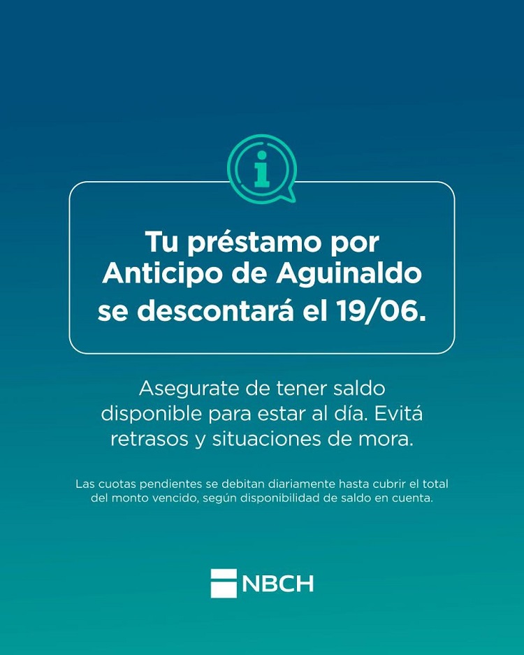 Solo si accediste al Anticipo de Aguinaldo, recordá que el descuento se realizará el 19 de junio