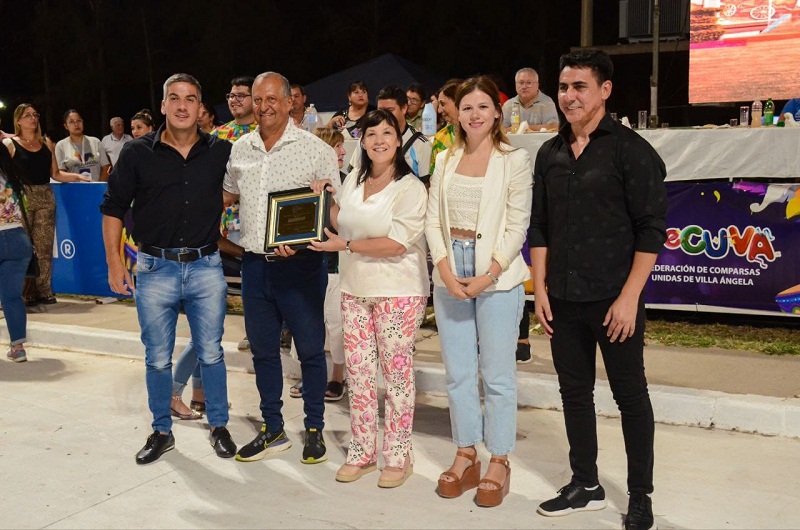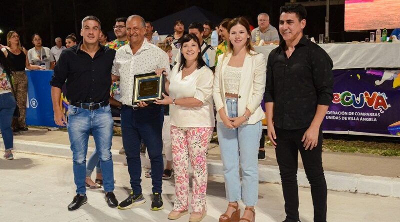 El Poder Legislativo del Chaco, encabezado por su presidenta Elida Cuesta, nuevamente reconoció el esfuerzo de las comparsas y el municipio de Villa Ángela que, año tras año, organizan los carnavales que resaltan el potencial artístico, cultural y turístico de toda una comunidad. Junto al intendente Adalberto Papp y a Silvina Canteros Reiser, Roberto Acosta y Nicolás Slimel la titular legislativa entregó placas de reconocimiento a las comparsas mayores e infantiles de Bahía, Ará Sunú y Hawaianas, que volvieron a competir en el corsódromo local.