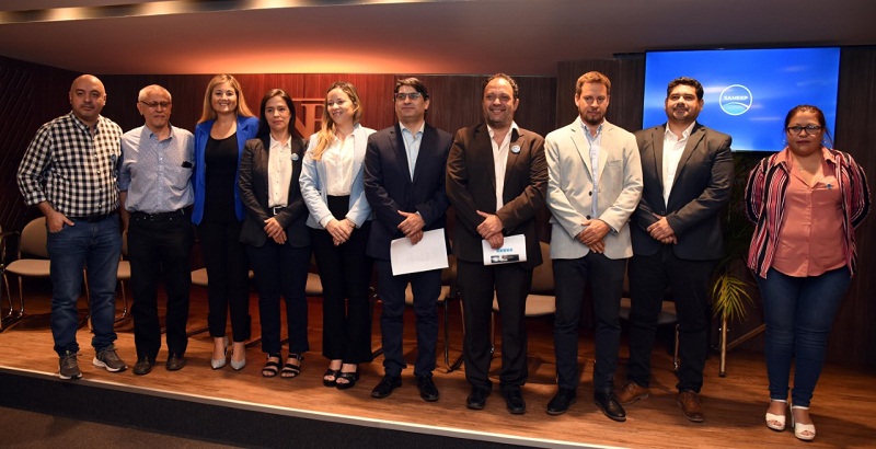Encabezaron el anuncio autoridades de Nuevo Banco del Chaco, el presidente Federico Muñoz Femenía, la directora Maia Woelflin y el director Javier Besga, la gerenta de Productos y Marketing, Daniela Romero; autoridades de Sameep, el presidente Gustavo D’Alessandro, el vocal César Frugoni, la vocal obrera Paola Sánchez, la gerente general María Laura Farela, el gerente de Sistemas, Aldo Di Nubila, y la jefa de Facturación y Cobranzas, Lorena Breard.
