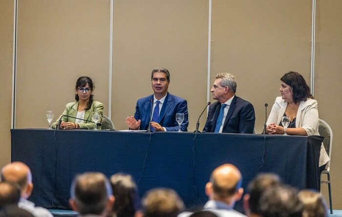 El gobernador Jorge Capitanich, junto a la vicegobernadora Analía Rach Quiroga y al jefe de Gabinete de la Nación, Agustín Rossi, presentó este martes en el Centro de Convenciones Gala, el Plan Federal de Formación y Capacitación en Gestión Pública 2023, en el marco del Plan de Gobierno Chaco 2030.