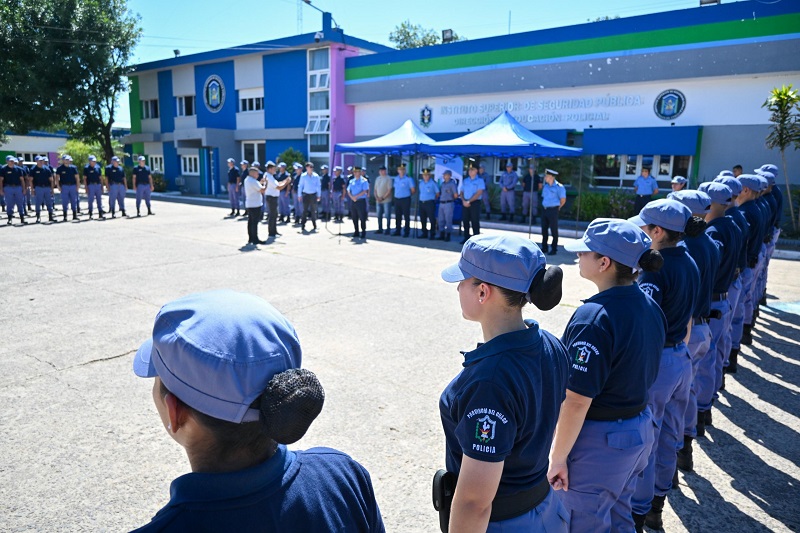 Durante la ceremonia, el ministro de Seguridad, Hugo Matkovich, se dirigió a los flamantes agentes y destacó el cumplimiento de la palabra empeñada: