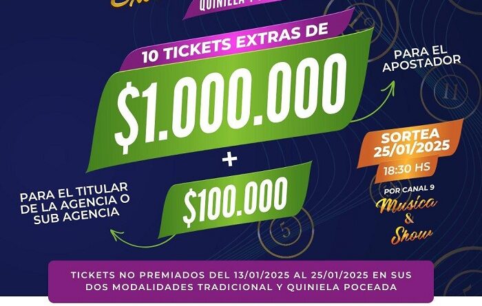 Con diez premios especiales de $1.000.000, uno por zona, para los tickets no premiados de Quiniela Oficial (La Previa, La Primera, Matutina, Vespertina y Nocturna) y Quiniela Poceada Chaqueña, jugados desde el 13 de enero de 2025 hasta el día 25 de enero del 2025 inclusive.