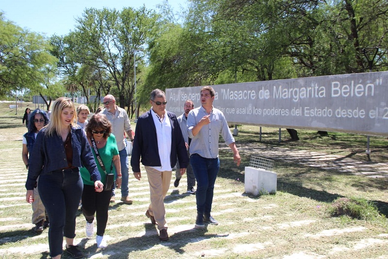 Este miércoles 2 de noviembre, el expresidente de Ecuador, Rafael Correa, junto a una comitiva provincial integrada por representantes de la Secretaría de Derechos Humanos y Géneros del Chaco, la Comisión Provincial por la Memoria, el Municipio de Margarita Belén y organismos de derechos humanos, visitaron el Parque de la Memoria ubicado en la mencionada localidad.