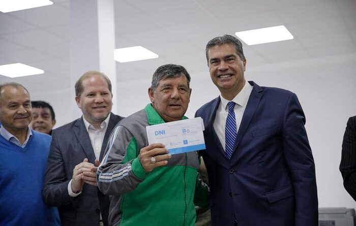 El gobernador Jorge Capitanich y el ministro de Gobierno y Trabajo, Juan Manuel Chapo entregaron este lunes los primeros 89 DNI con nuevo diseño para veteranos de la guerra de Malvinas. “Hoy entregamos estos nuevos documentos, que constituyen un reconocimiento histórico para todos nuestros ex combatientes”, dijo el gobernador en el acto realizado en el Museo Malvinas Chaco de Resistencia, donde se llevan adelante además obras de ampliación y refacción.